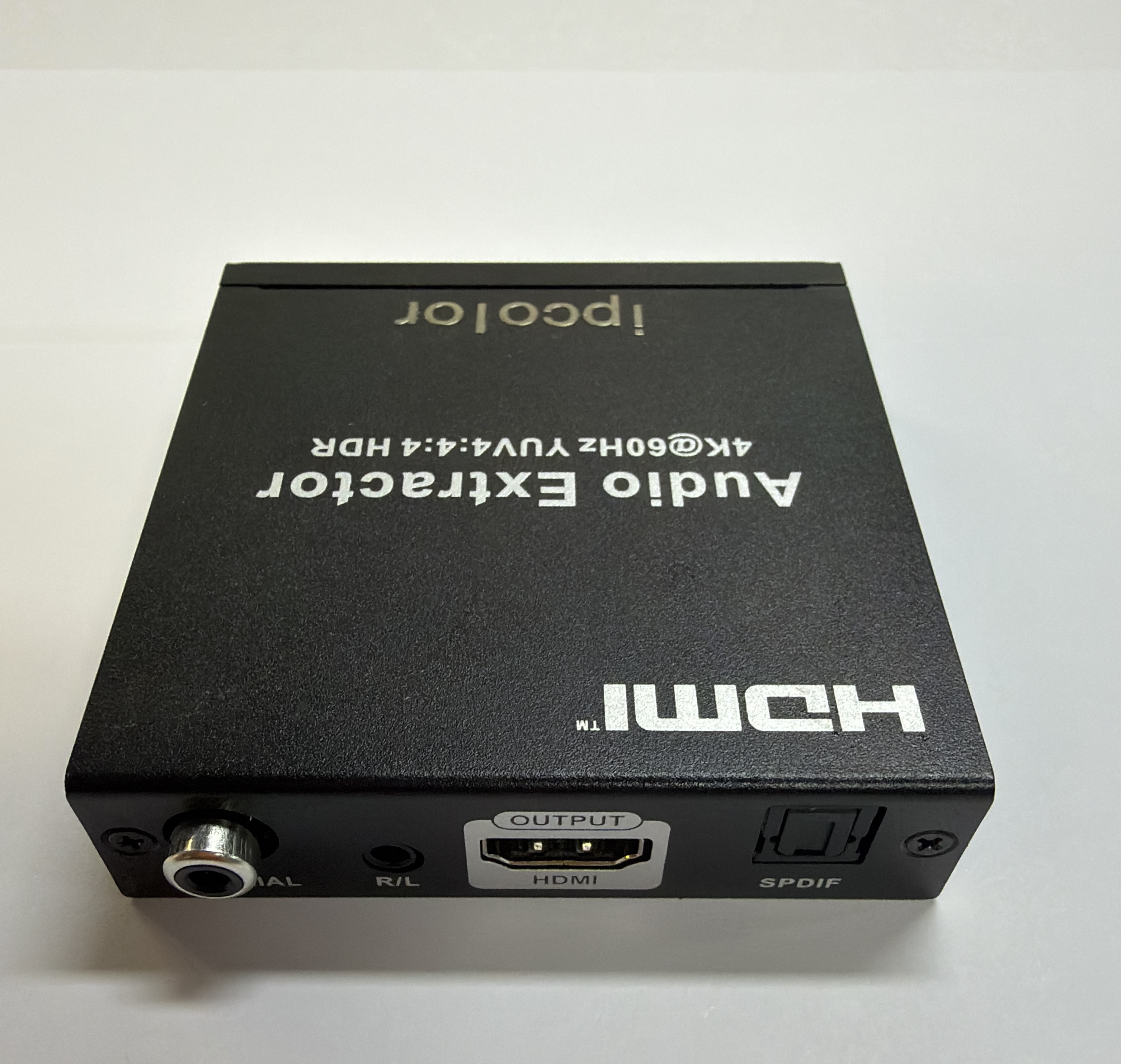 One HDMI input converted to one HDMI Video+(SPDIF+R/L+COAXIAL) Audio output.(SPDIF optical audio output and COAXIAL audio output cannot be used simultaneously. R/L stereo output is not avai